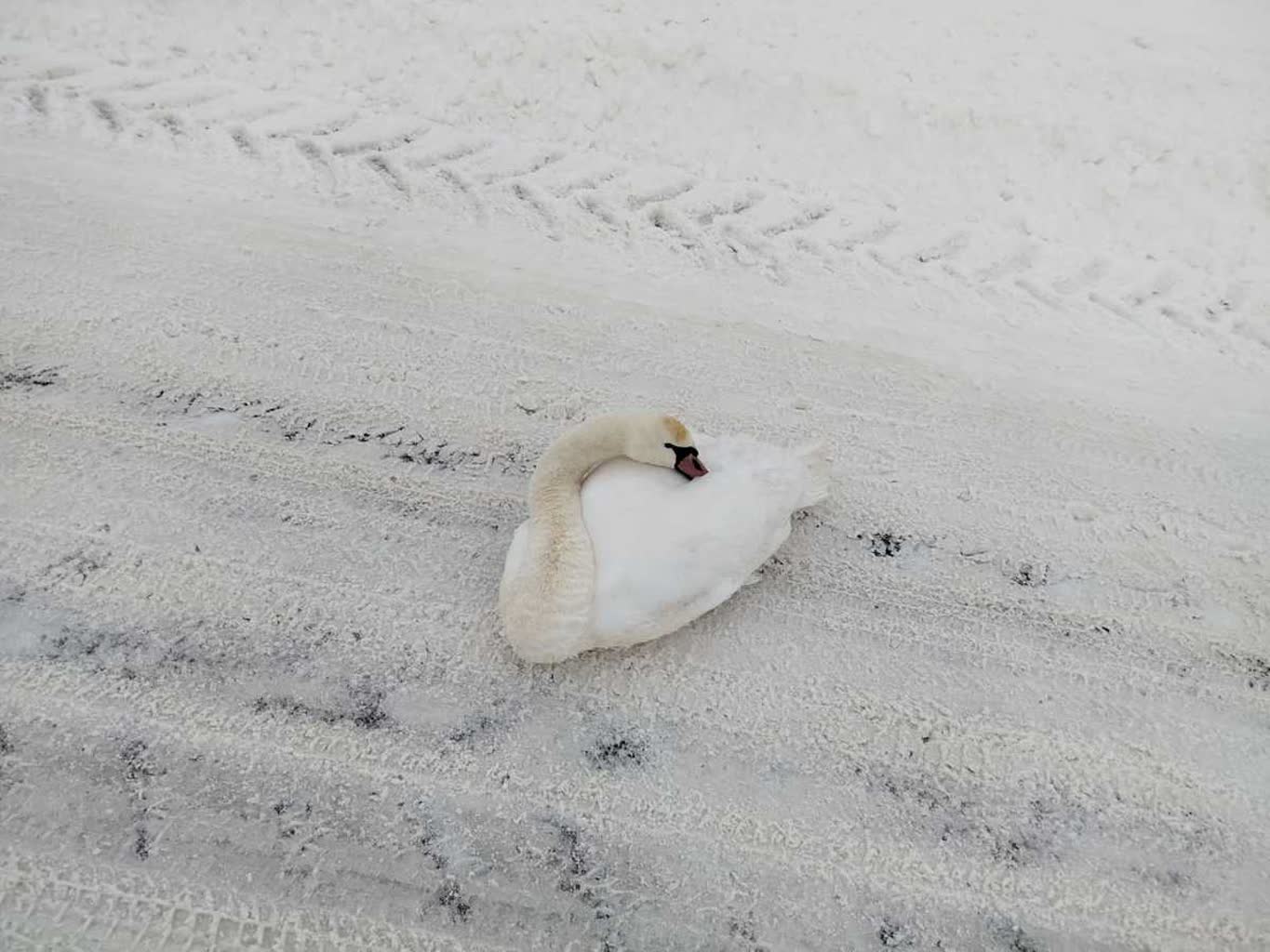 Sprawna reakcja 32-latka pozwoliła uratować łabędzia przymarzniętego do jezdni. Mężczyzna zauważył na drodze zwierzę, które nie było w stanie samodzielnie się poruszać, i wezwał pomoc.