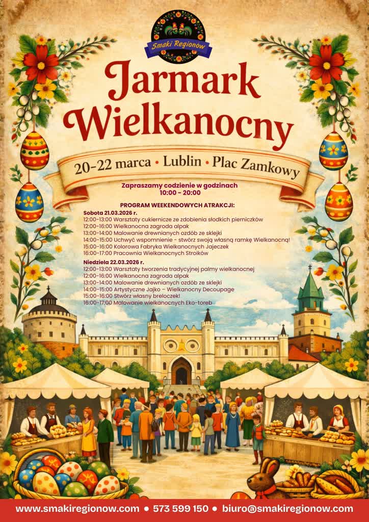 W dniach 20–22 marca w centrum Lublina odbędzie się Jarmark Wielkanocny. Wydarzenie zaplanowano na Placu Zamkowym, który na trzy dni zamieni się w przestrzeń pełną świątecznej atmosfery, tradycji i wiosennych akcentów.