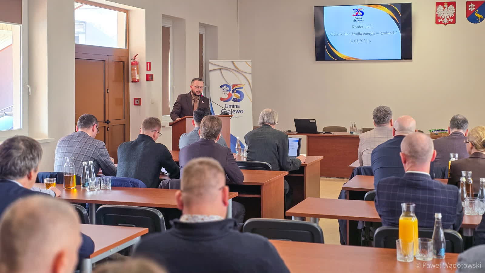 Organizatorem konferencji była gmina Grajewo. Jak mówił jej wójt, Grzegorz Górski, teraz na jej terenie jest 19 turbin wiatrowych. – Mamy 19 wiatraków w naszej gminie i chcemy dostawić kolejne. Chcemy również dostawić farmy fotowoltaiczne, a gmina chce przystąpić do spółdzielni energetycznej i zarządzać swoją energią na potrzeby instytucji gminnych. Z tych 19 turbin, które stoją na terenie gminy mamy roczny podatek w wysokości około 3 milionów 300 tysięcy złotych Te pieniądze idą na całe funkcjonowanie gminy, na potrzeby mieszkańców. Czyli infrastruktura drogowa, infrastruktura wodociągowa, na szkoły, które powodują duży deficyt. Dlatego dobrze, że są inwestycje, które gdzieś nam bilansują straty, które musimy ponieść – podkreślał Grzegorz Górski.