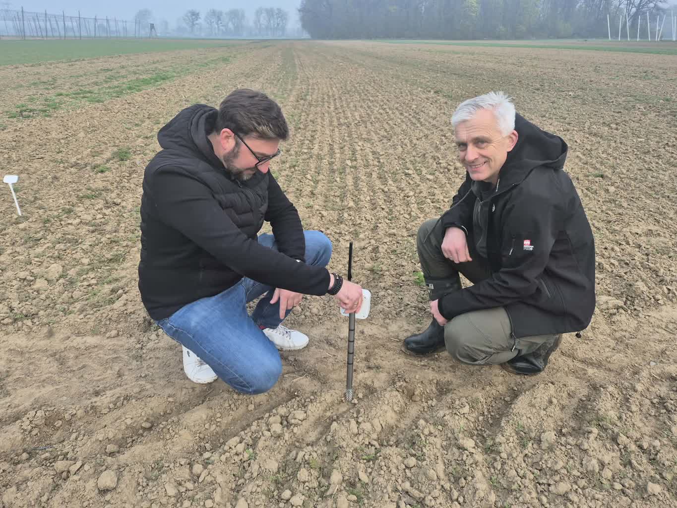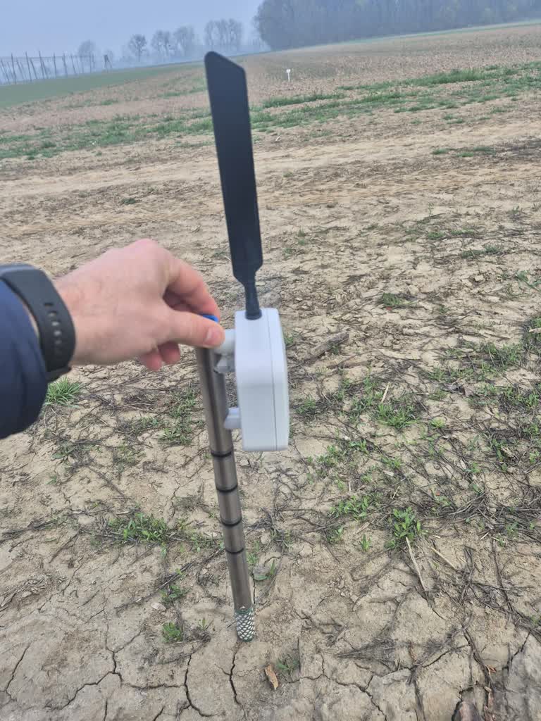– Jest to dużo mniejszy system niż ten obecnie, który montujemy na polach u rolników – opowiada Tytus Berbeć. – Wiercimy otwór w glebie, umieszczamy czujnik. Praktycznie niewidoczny jest z zewnątrz – dodaje.