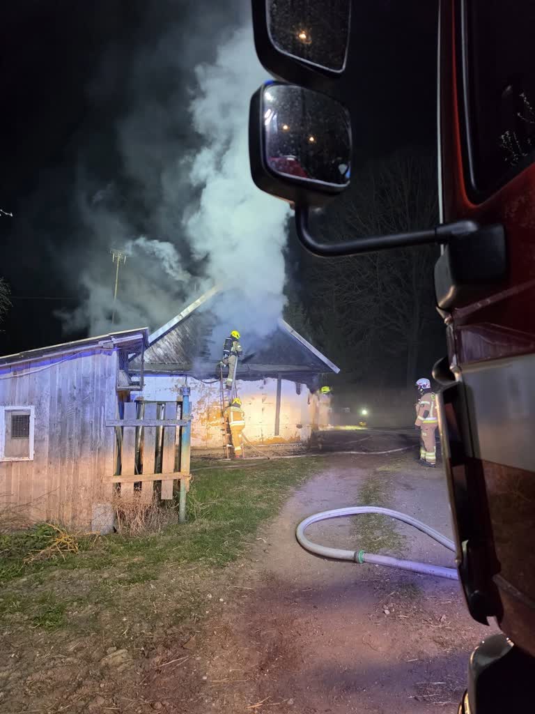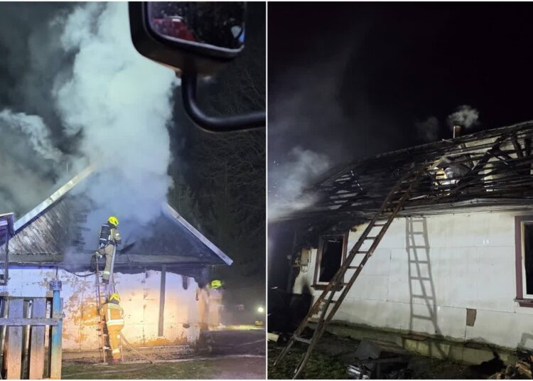 Ma zdj. pożar budynku mieszkalnego w miejscowości Minkowce (fot. OSP Szudziałowo FB – materiał nadesłany) – źródło: PRB