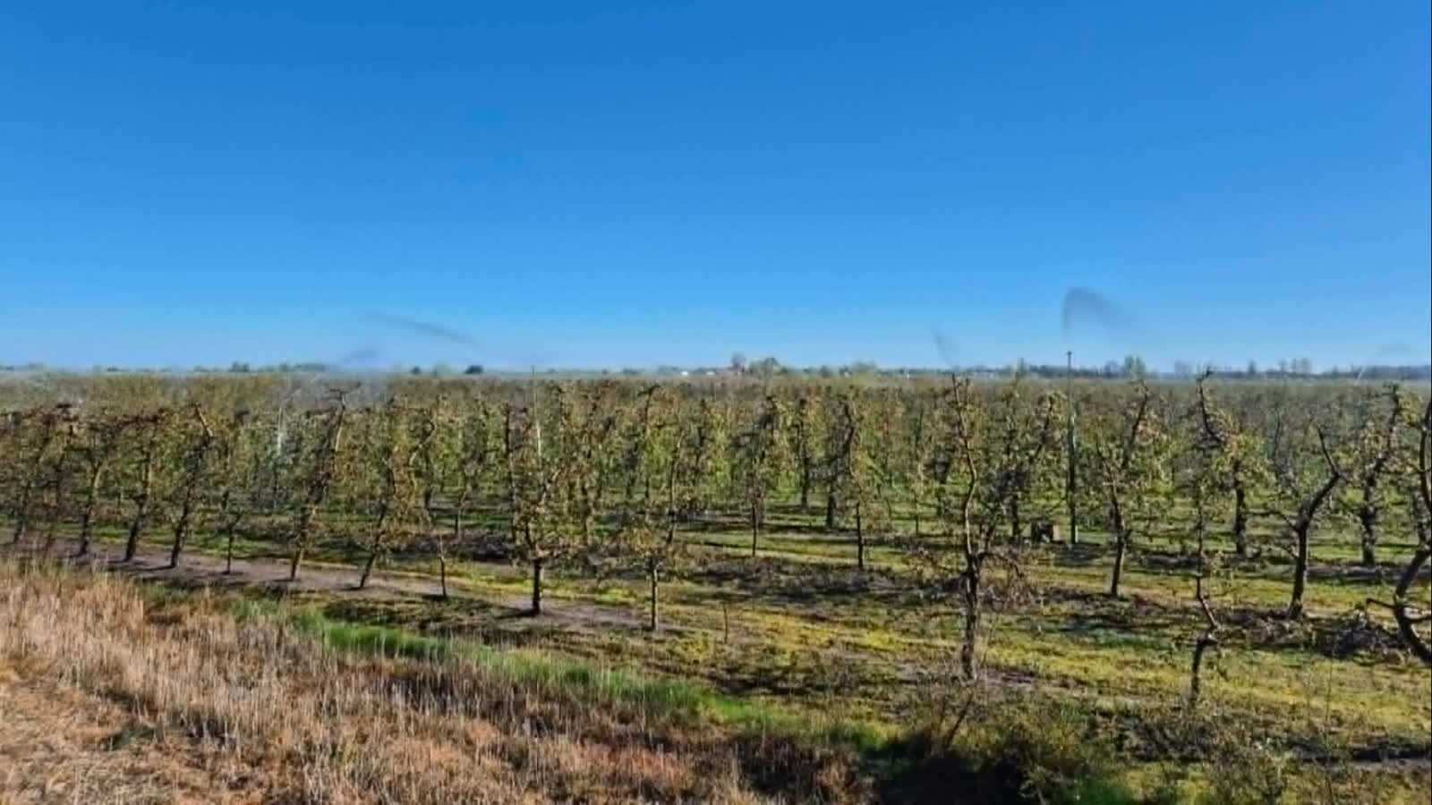 Co obecnie dzieje się na plantacjach? – Woda jest tłoczona w magistralę, przenoszona jest do zraszaczy – mówi sołtys Kostyra. – Woda później trafia na drzewa, zamarza i to nam ratuje cały plon. Prawdopodobnie, bo też nie można powiedzieć, że to będzie tak kolorowo, bo deszczownia wytrzymuje do temperatury minus 7, może do minus 10, ale nie wszędzie.