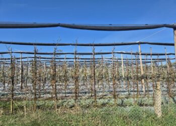 – Taką instalacją do minus 8 można spokojnie ochronić – wskazuje Krzysztof Cybulak. – Jedyny warunek, żeby nie było wiatru. Myśmy to opryskali pod tym mrozie giberelinami. To nie chodzi o to, że my to uratujemy. Z brązowego zielone się nie zrobi. Tylko w roślinie wtedy gibereliny powodują to, że jest zjawisko kompensacji i wtedy roślina sama już wie, gdzie jest jakiś kwiatek ocalały. Tam kierujesz wszystkie składniki, asymilaty itd. Cytokininy, auksyny i gibereliny to są hormony wzrostu właśnie. Akurat giberelina jest najlepsza, jeżeli chodzi o takie szkody.