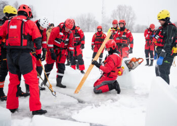 Pokaz ratownictwa na lodzie na Zalewie Zemborzyckim
